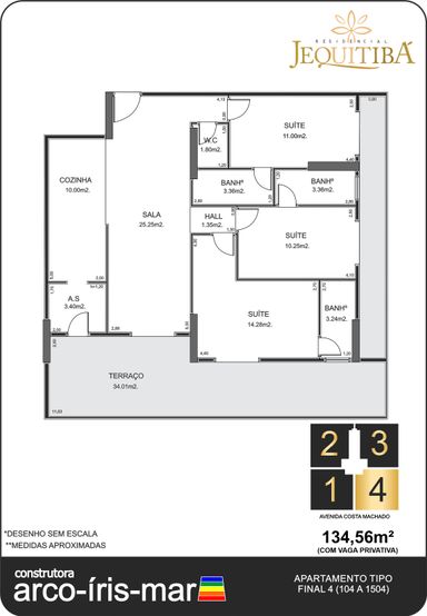 134 m² de área privativa